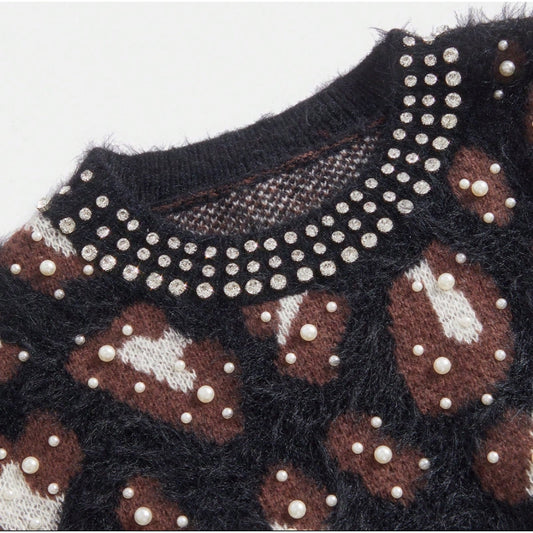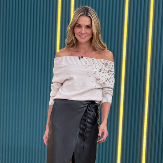 Sweater Tejido Cuello Barco con Apliques en Rhinestones