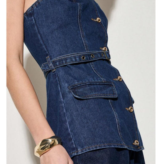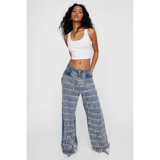 Set Crop Top y Falda en Denim con Apliques en Rhinestones
