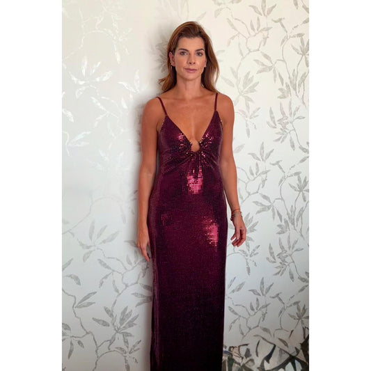 Vestido Maxi de Tiras en Lentejuela Disco Vm