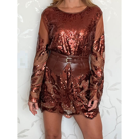 Vestido Mini Cocktail con Lentejuelas Manga Larga