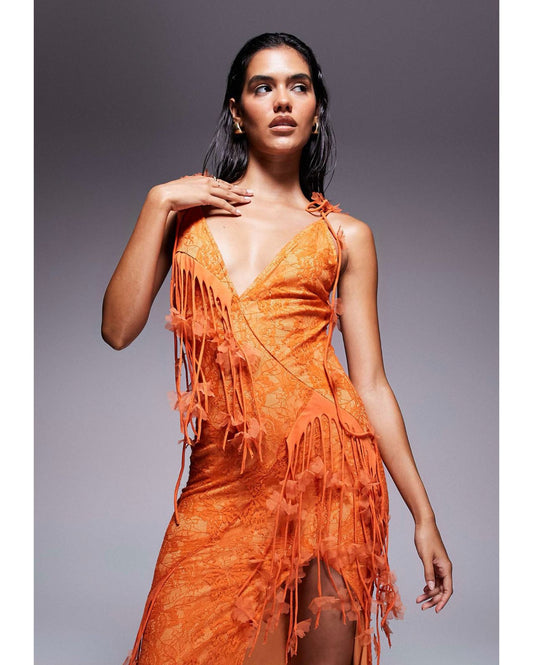 Vestido Midi con Flecos Vm
