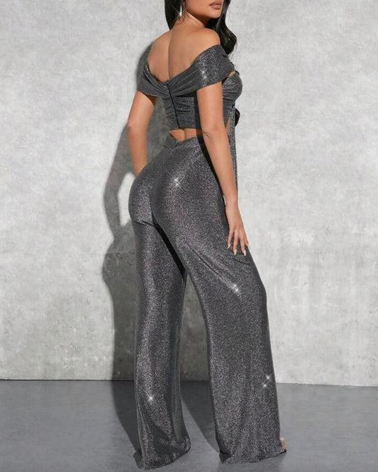 Enterizo con Escote Barco y Tejido Metalizado Vm