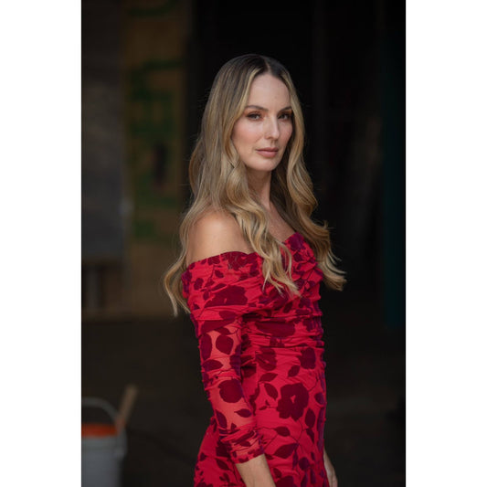 Vestido Midi Strapless Plisado Tipo Corset Burgundy Mc