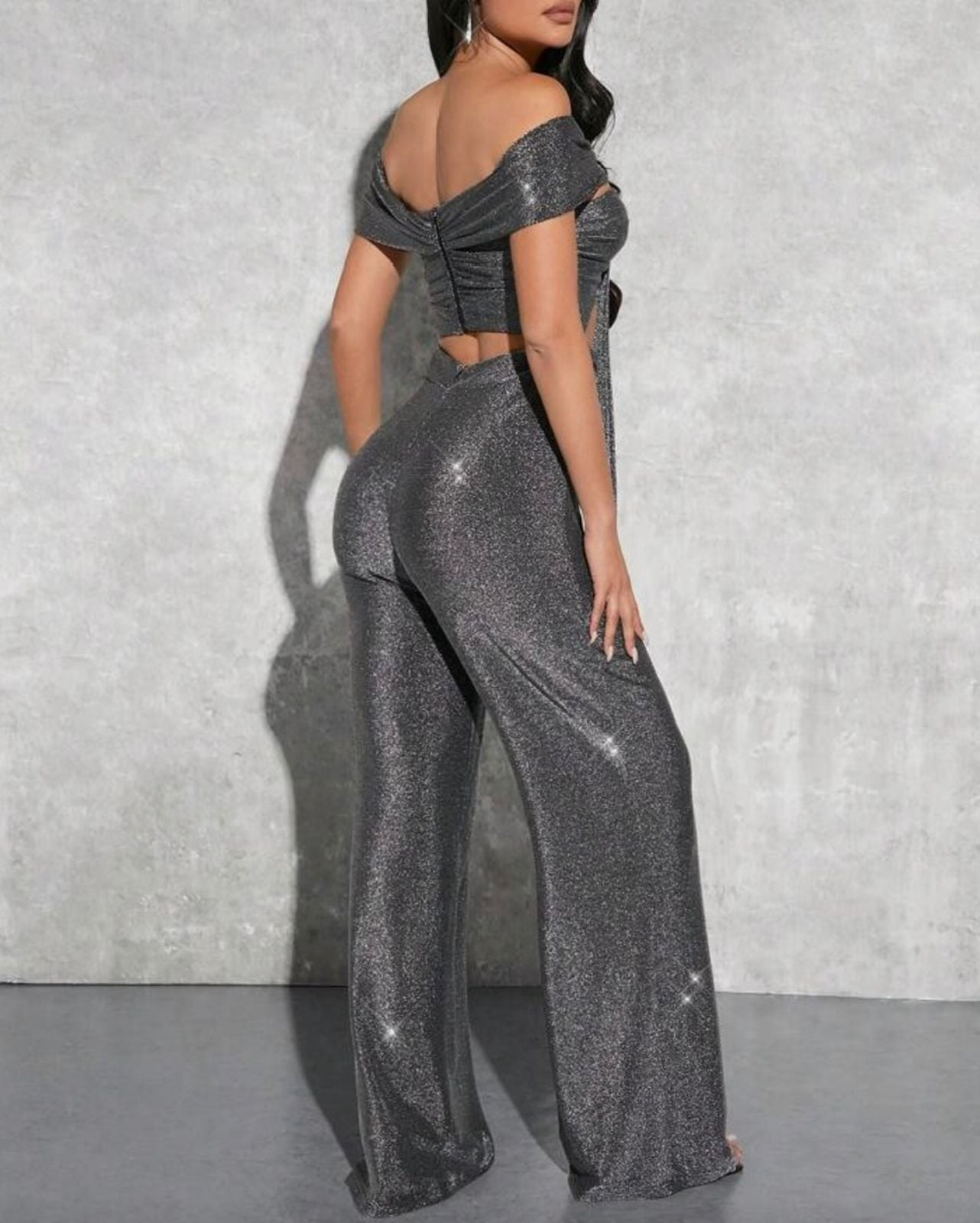 El enterizo es una prenda que irradia elegancia y confianza, ideal para quienes desean destacar con un look sofisticado y moderno. Confeccionado en un tejido metálico brillante en tono gris grafito, este diseño captura la luz desde cada ángulo, creando un efecto deslumbrante digno de una noche inolvidable.El top cruzado con escote off-shoulder y detalle de nudo frontal realza el busto y aporta un toque sensual, mientras el corte cut-out en el abdomen equilibra audacia y glamour. El pantalón de pierna ancha fluida alarga la silueta, aportando movimiento y elegancia con cada paso.El cinturón con hebilla brillante define la cintura, completando un conjunto perfecto para eventos nocturnos, fiestas o celebraciones donde el brillo y la actitud son protagonistas.