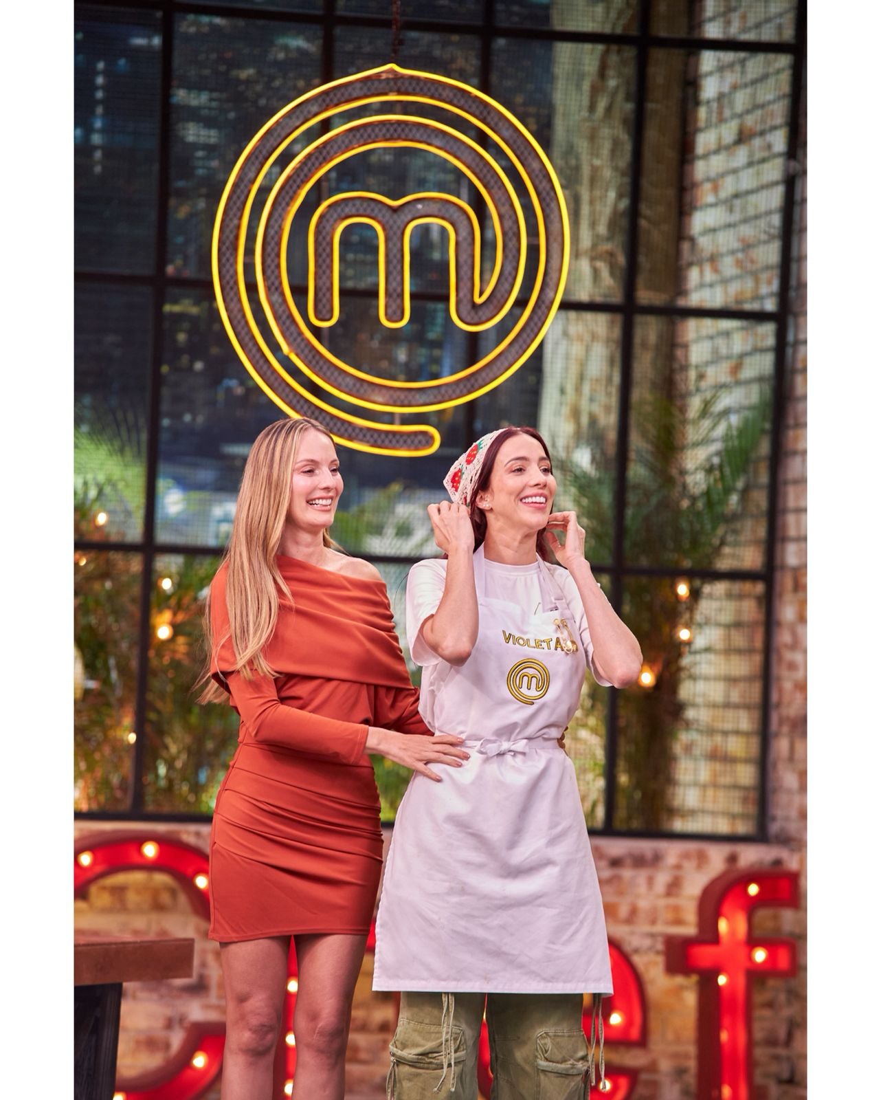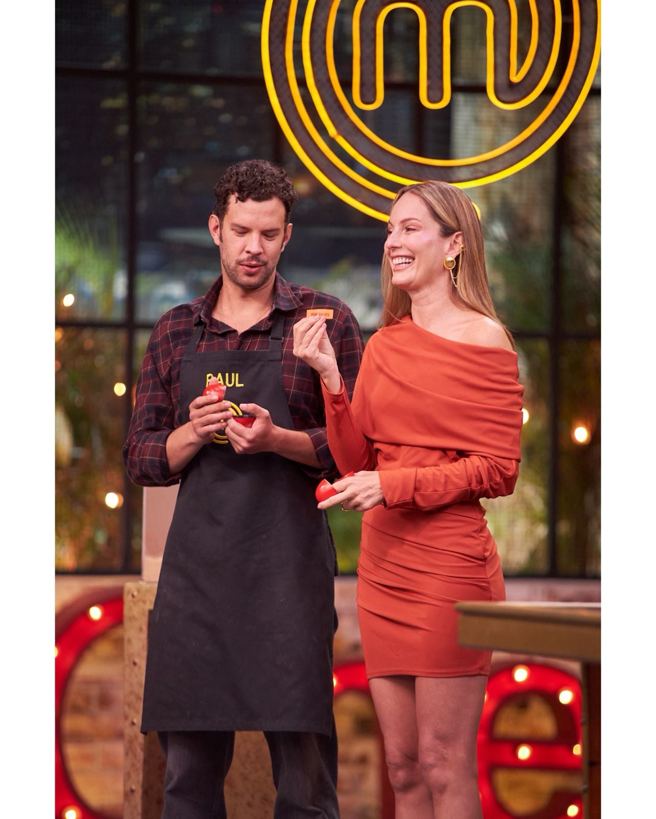 mini vestido de corte ajustado y mangas largas en un vibrante color terracota, ladrillo quemado o naranja óxido, ideal para un look elegante y moderno. La característica más distintiva de la prenda es su escote bardot o de hombros caídos, que se presenta con un diseño drapeado o plegado en la parte superior que crea volumen y textura alrededor de los hombros y el pecho. La tela, que parece ser de punto o elástica, envuelve la figura y tiene un fruncido (drapeado) sutilen el cuerpo que ayuda a acentuar la silueta, ofreciendo una combinación de sofisticación y sensualidad.