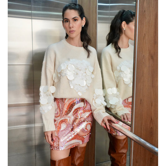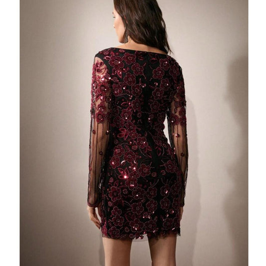 Vestido Mini Cocktail en Lentejuelas con Mangas Largas Vm
