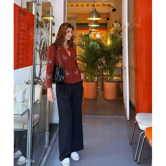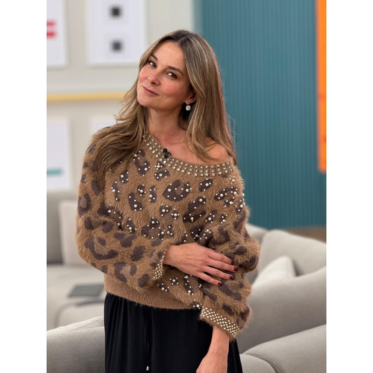 Jean de Pretina Asimétrica y Recamado en Perlas
