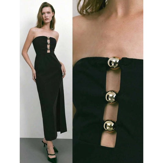 Vestido Midi Cut Out Asiemetrico con Encaje