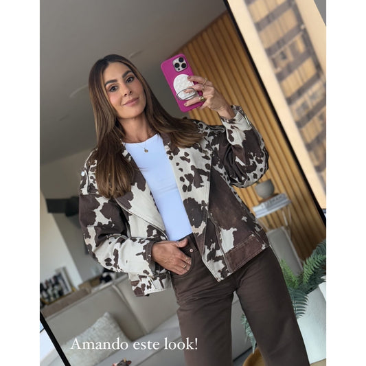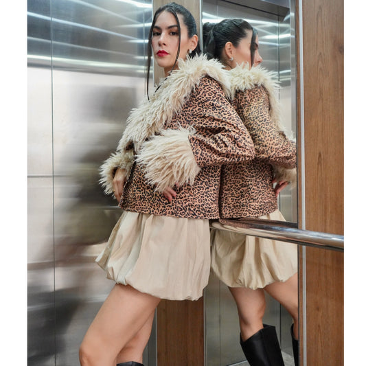 Chaqueta Estampada Animal Print con Solapa Pelos