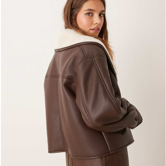 Chaqueta con Cuello de Piel de Oveja Mocha