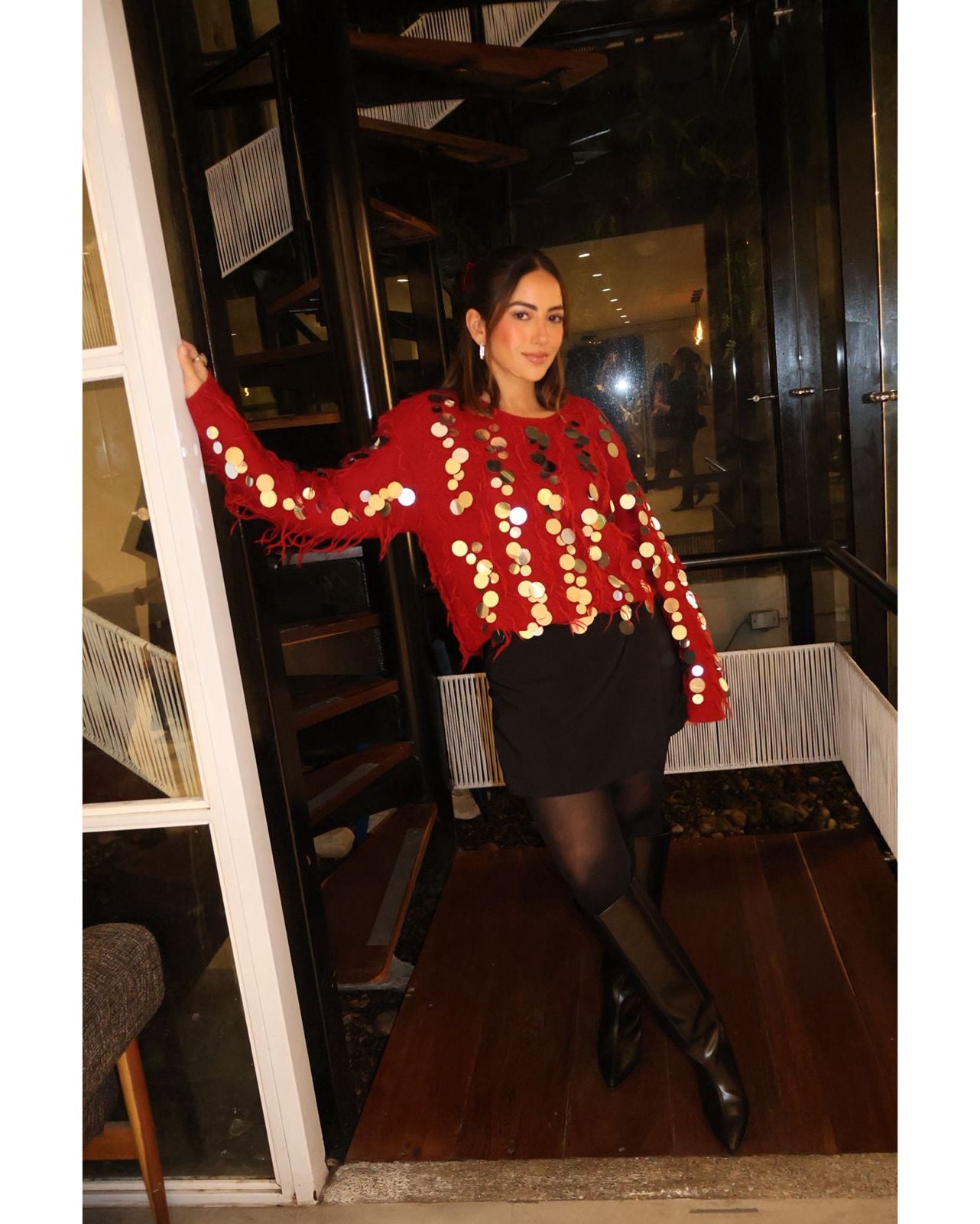 El sweater rojo con lentejuelas es la combinación perfecta de elegancia y un toque atrevido. Su diseño con aplicacio... Leer más