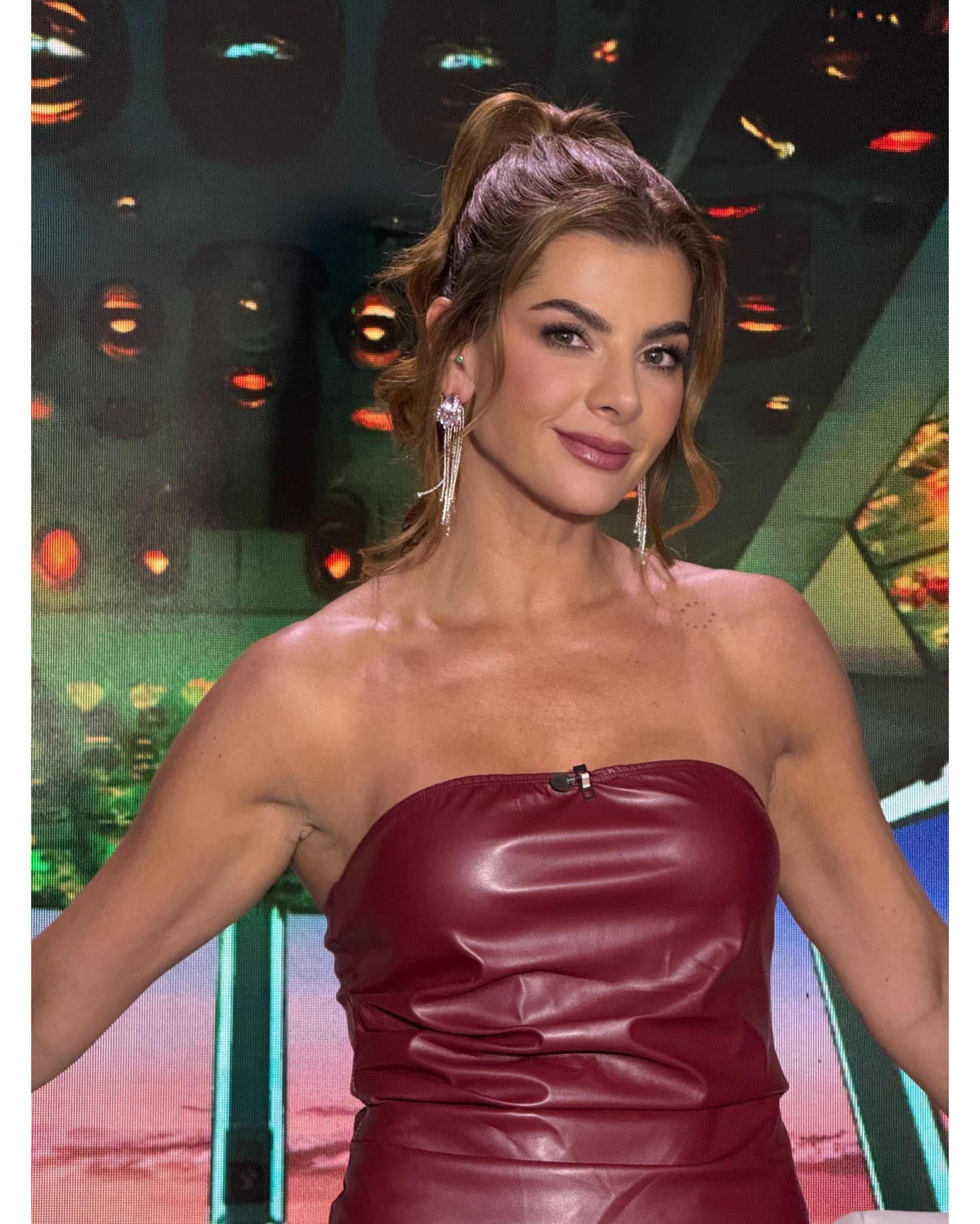 Top Asimétrico, palabra de honor confeccionado en tejido efecto piel con acabado brillante. Diseño ajustado al cuerpo con drapeado lateral que realza la silueta y aporta textura al diseño. Bajo asimétrico que estiliza la figura y añade un toque contemporáneo. Una prenda versátil y elegante, perfecta para elevar looks de noche o aportar carácter a un outfit urbano con blazer o denim.