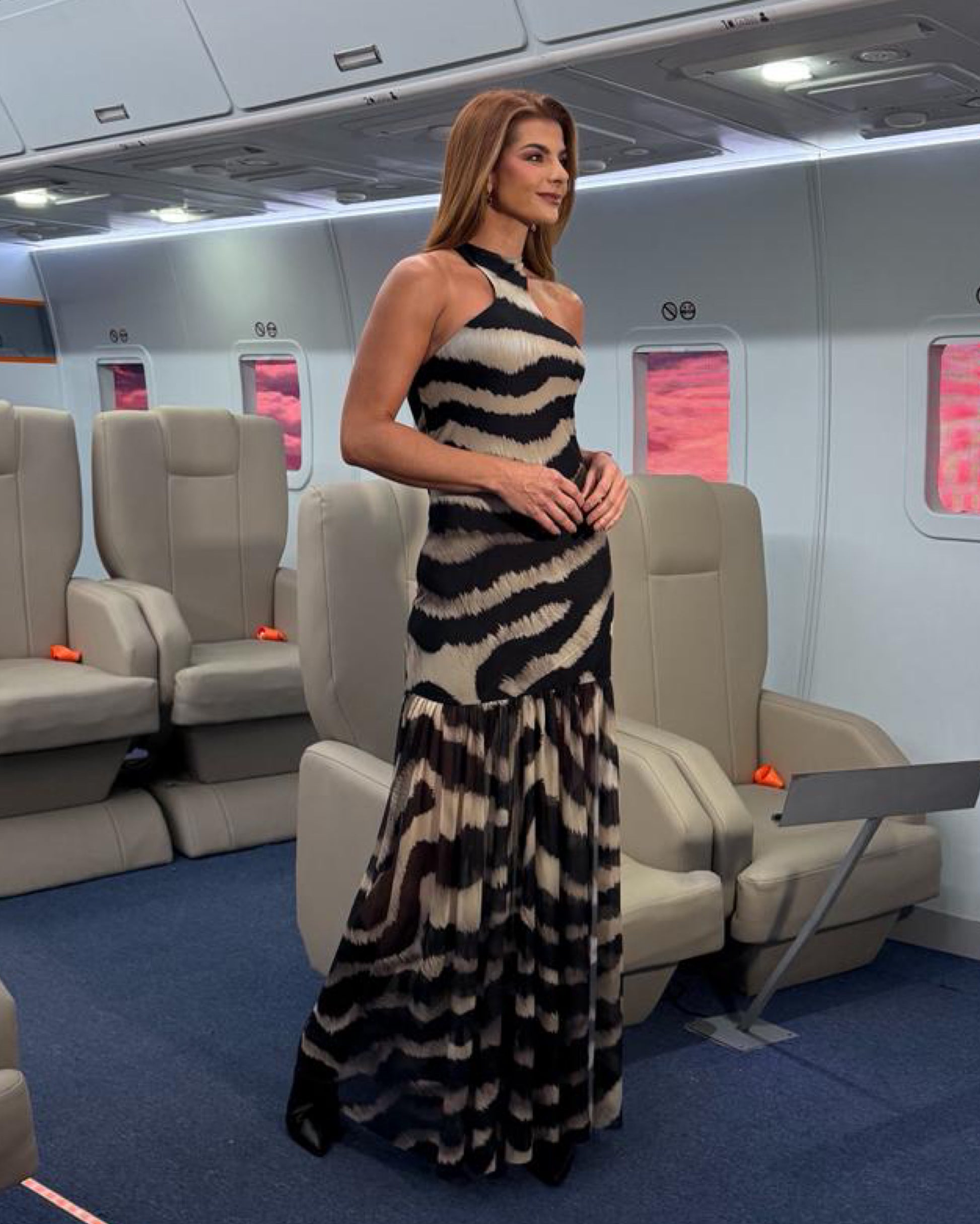 Vestido largo con diseño halter y escote con aberturas frontales que realzan la silueta. Confeccionado con estampado animal degradé en tonos neutros, combina una parte superior ceñida con una falda plisada de caída fluida y abertura lateral. Incluye cinturón ancho con ojales metálicos que aporta un toque moderno y definido a la cintura. Un diseño sofisticado y audaz, perfecto para noches de verano o eventos con un aire glamuroso y salvaje.