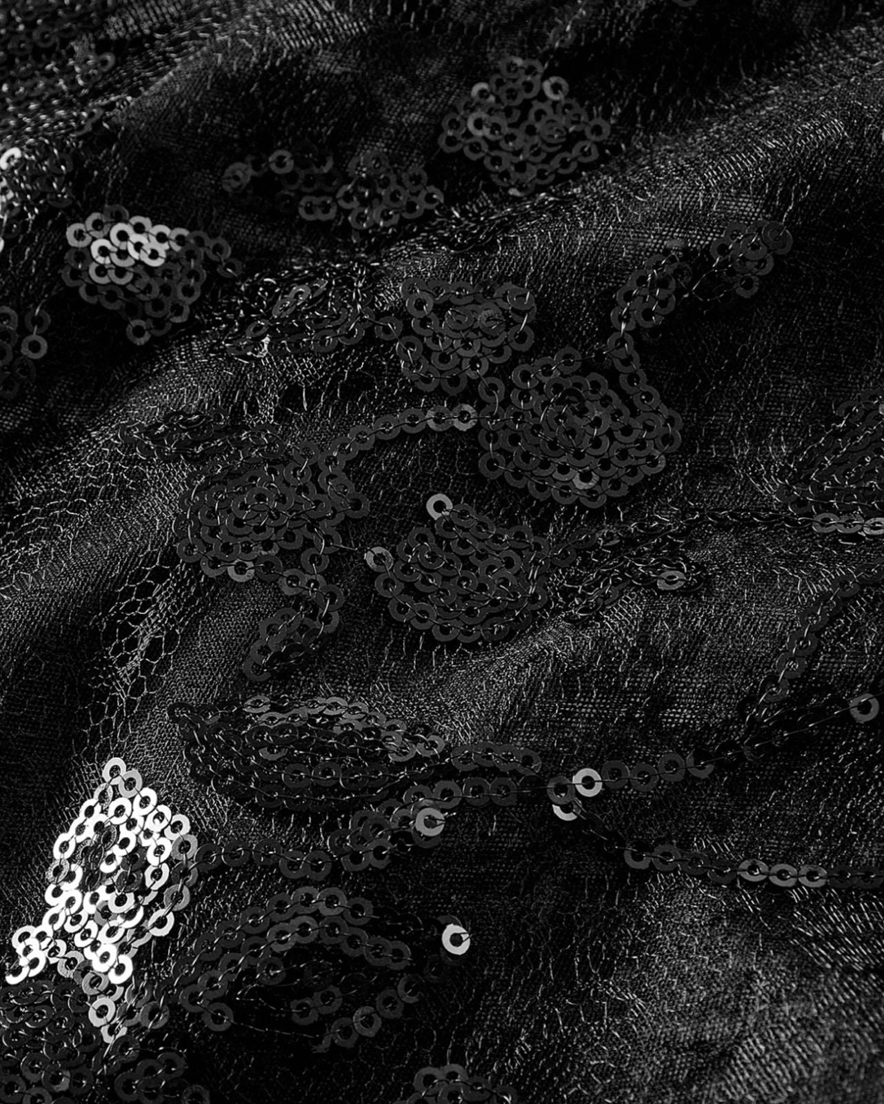 Este maxi vestido negro combina la sobriedad de un diseño de líneas limpias con el brillo sutil de las lentejuelas en el bajo. Confeccionado en un tejido suave y elástico que se adapta al cuerpo, destaca por su silueta entallada, cuello alto y mangas largas que equilibran el brillo con sofisticación.